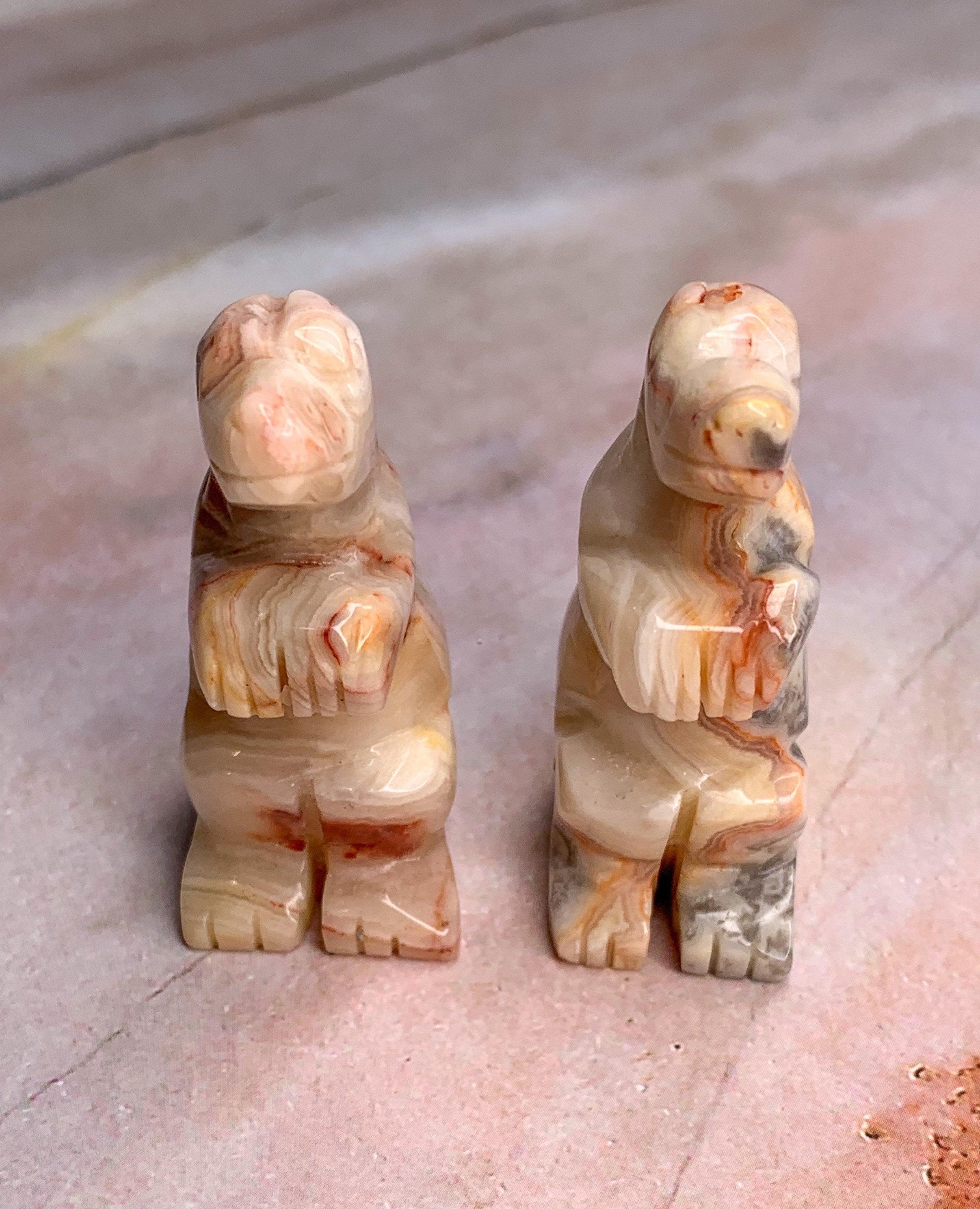 This listing is for one (1) intuitively chosen crazy lace agate dinosaur.