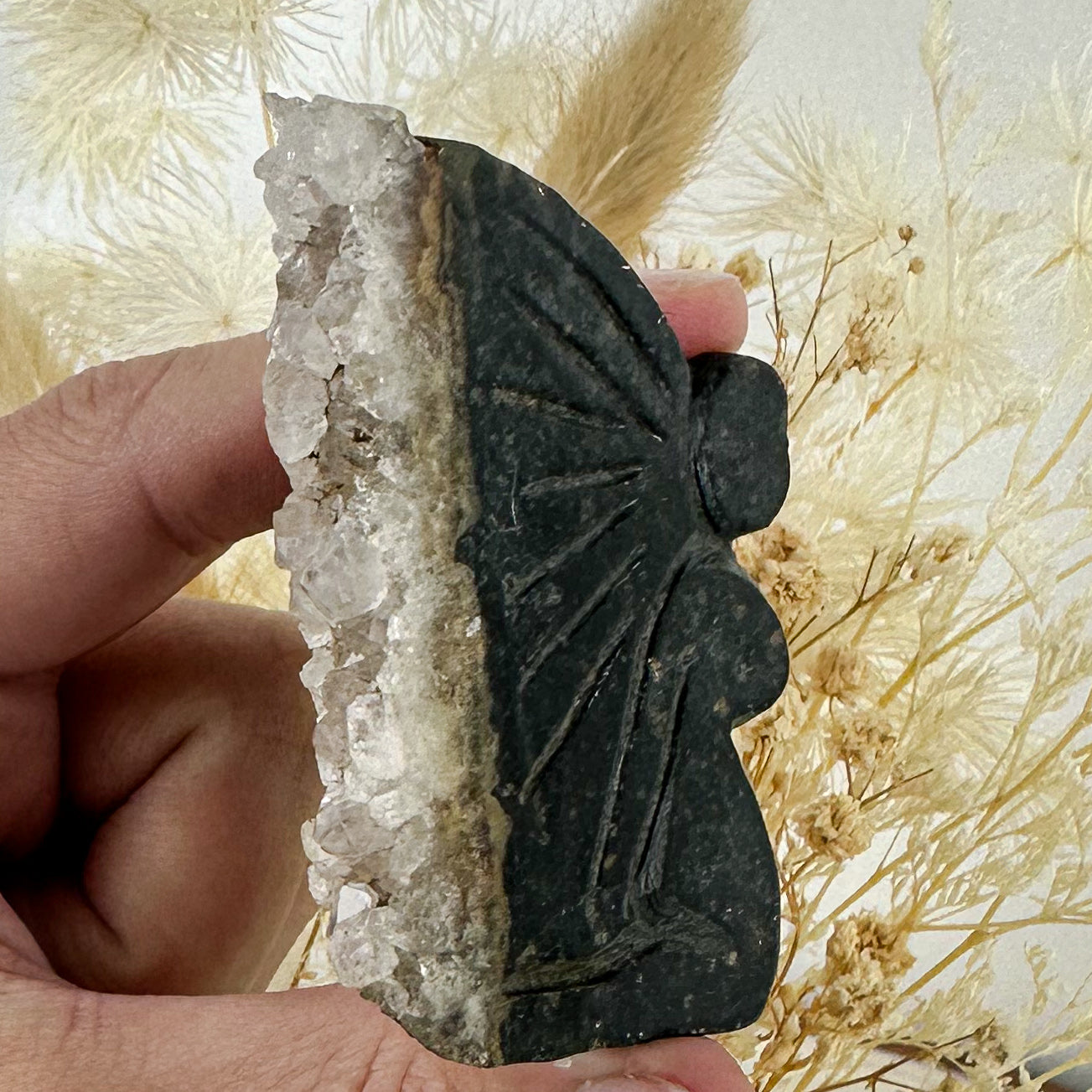 Hand Carved Fairy with Quartz Druzy Wings - 41g