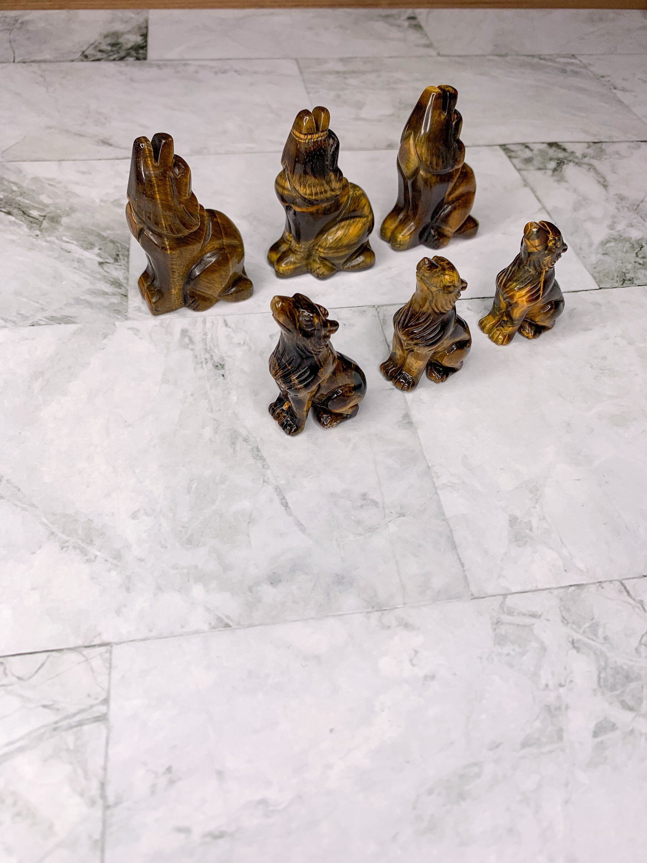 This listing is for one (1) intuitively chosen large tiger eye wolf or 1 small tiger eye wolf.