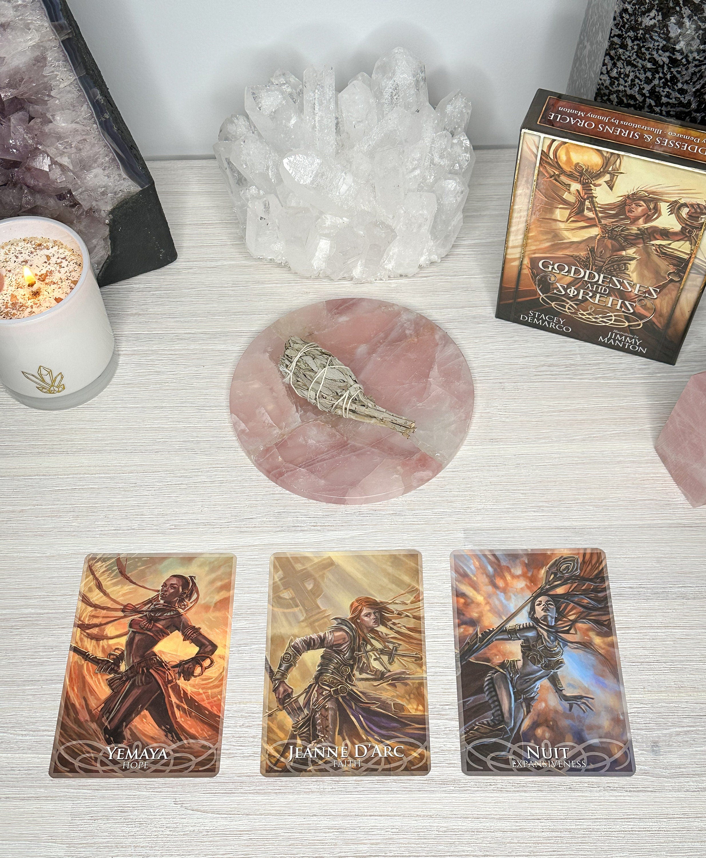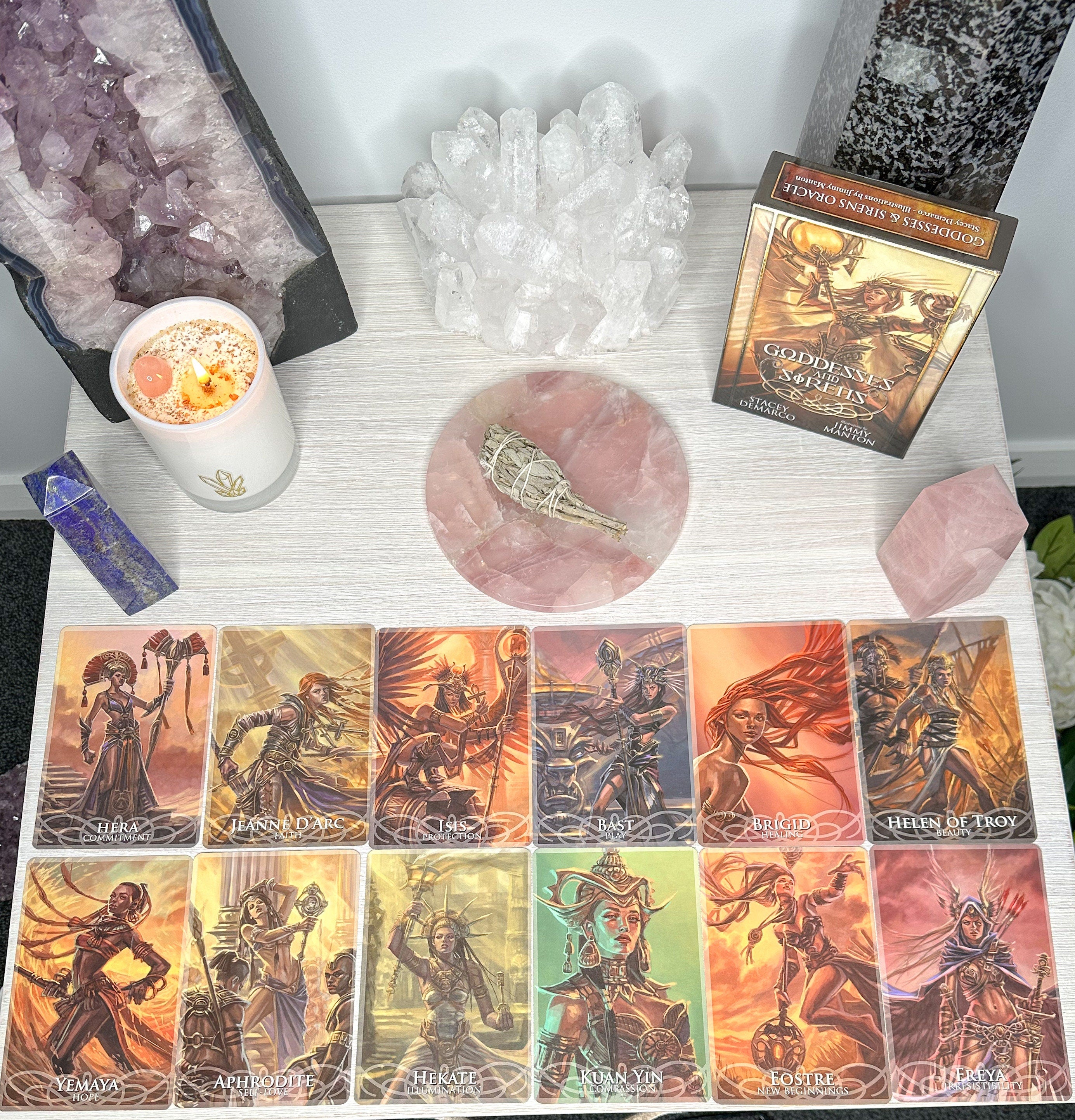 🔮 Oracle Reading by Everlasting Crystals: Seek guidance and clarity with our personalized oracle readings using the beautiful Goddess and Sirens Deck by Stacey Demarco and illustrations by Jimmy Manton.