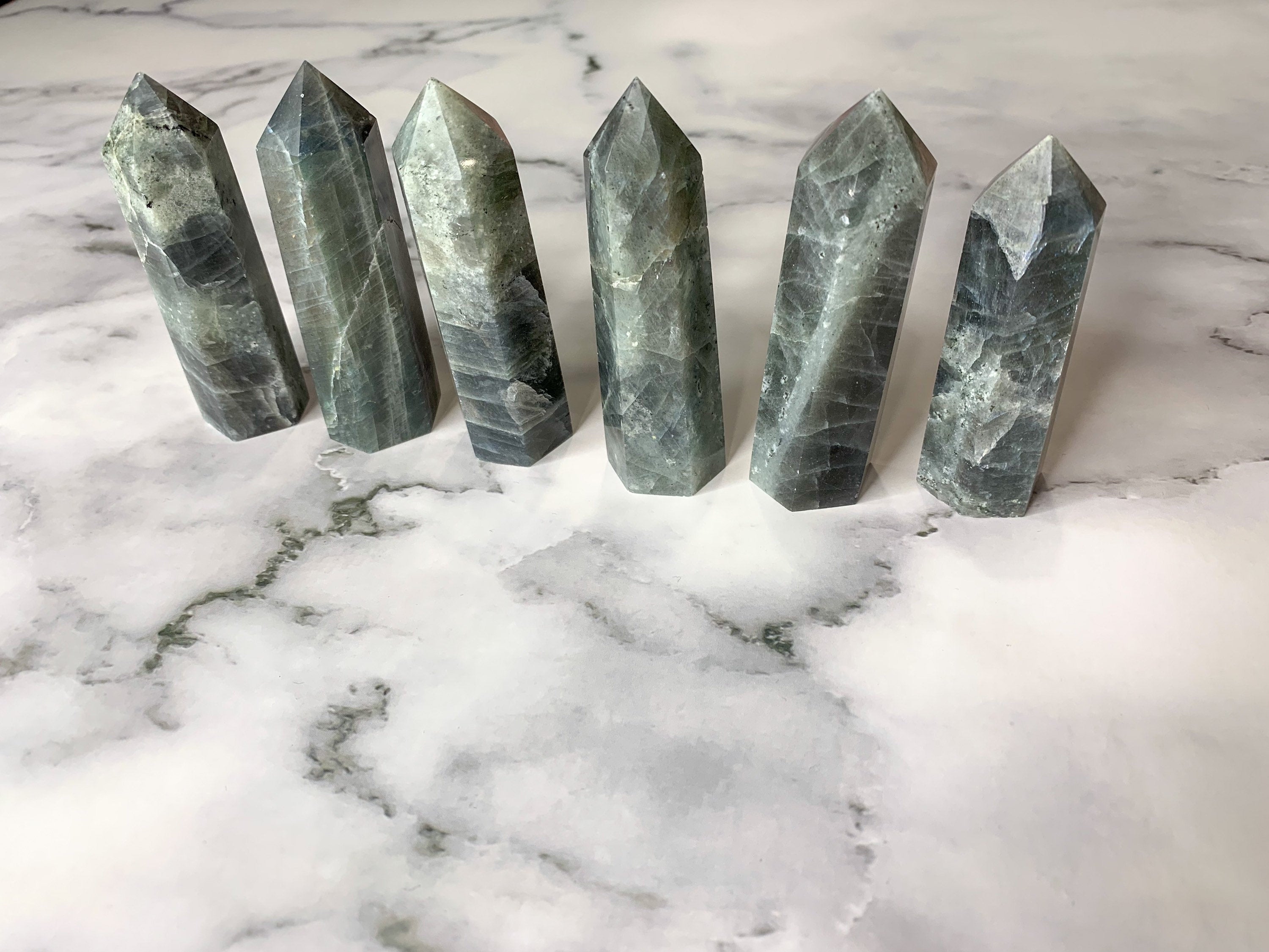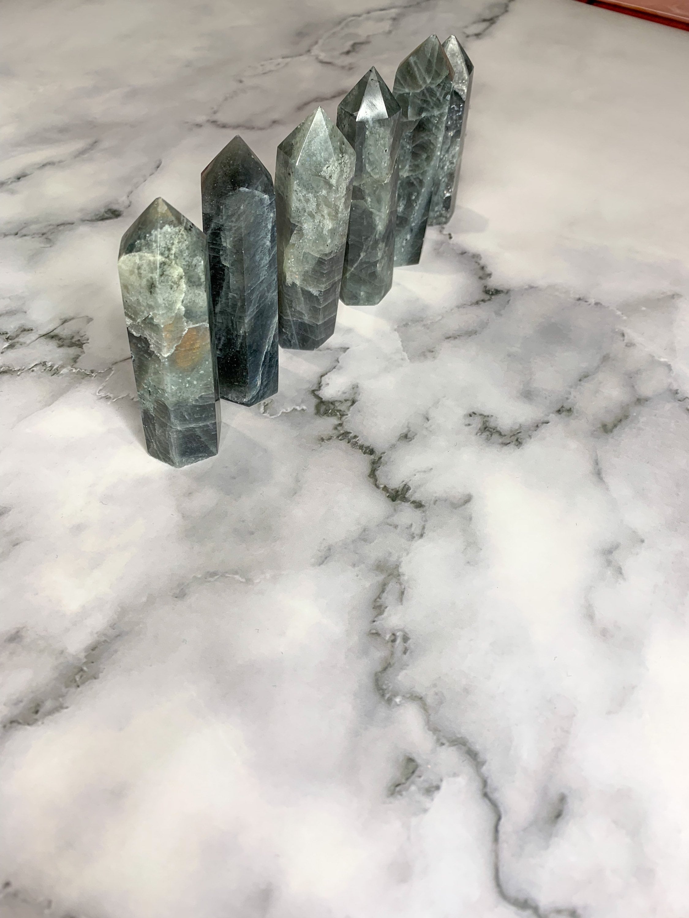 This listing is for one (1) intuitively chosen Labradorite tower.