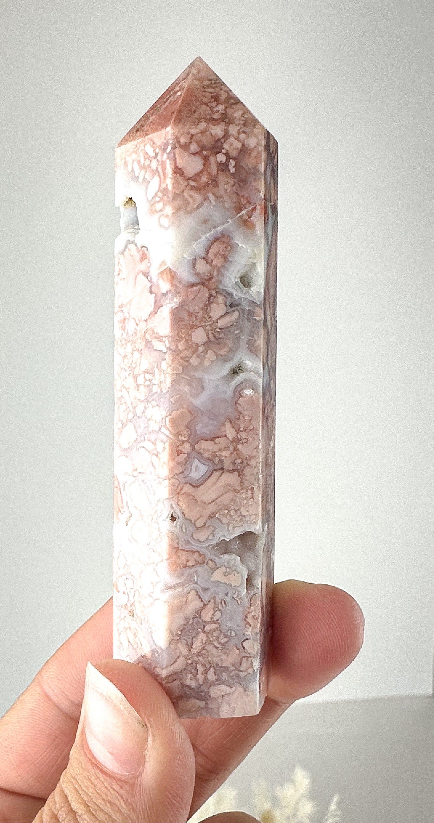 Whether you're a crystal enthusiast or simply seeking to add a touch of elegance to your decor, this Pink Agate Tower is an exquisite choice. Embrace the harmonious energy it brings into your surroundings and cherish its unique beauty.