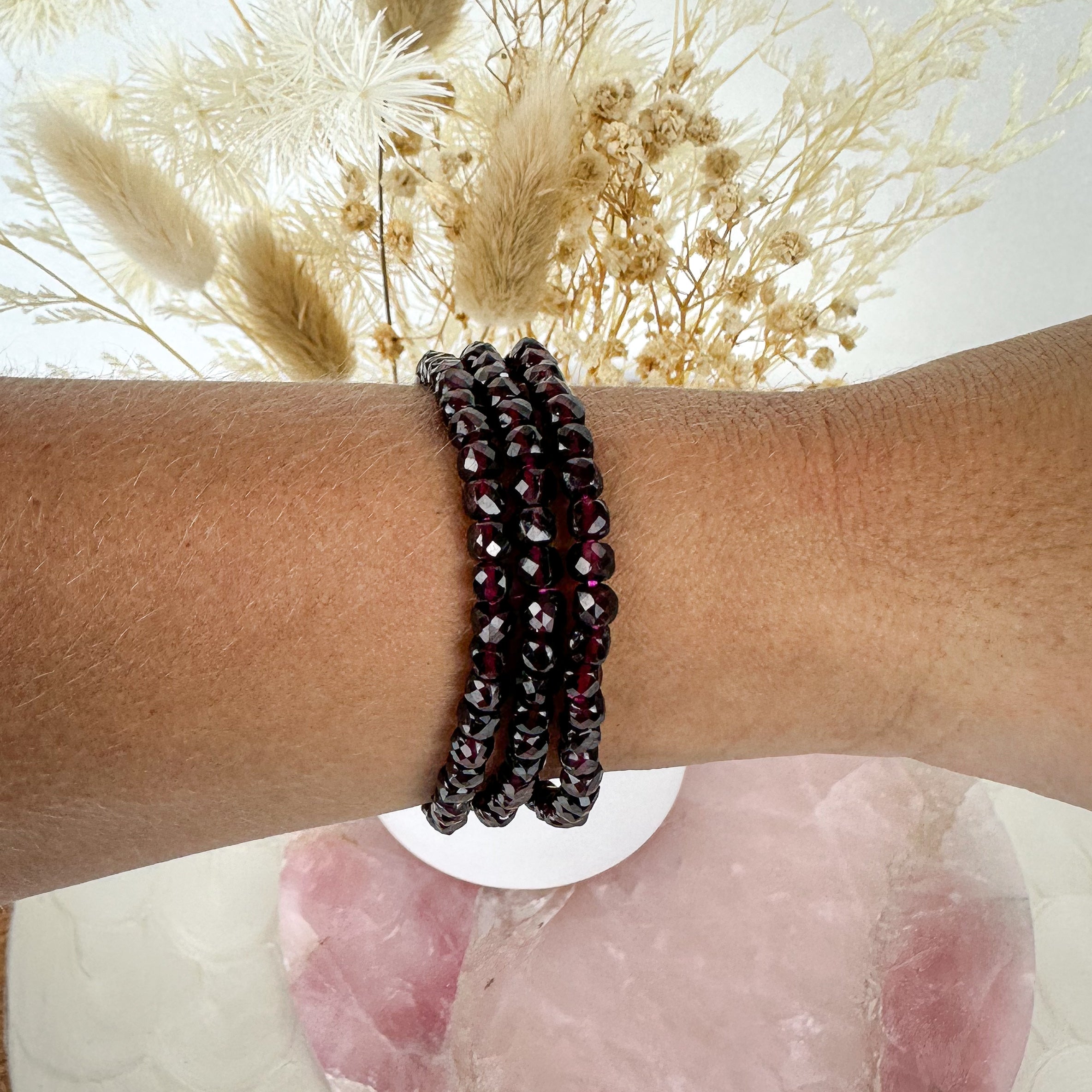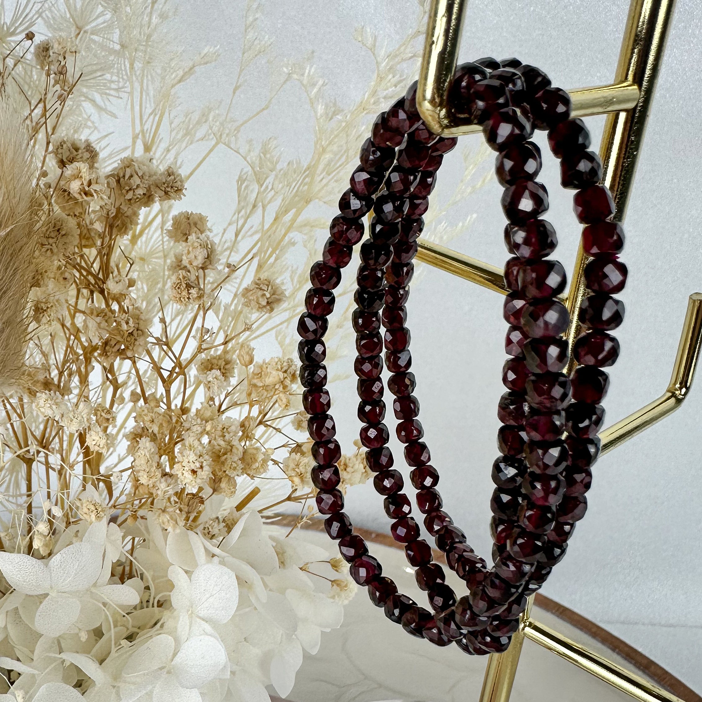 Elevate your style with our exquisite Red Garnet Mini Beaded Bracelet, featuring high-quality faceted gems that sparkle with elegance. Each bead, approximately 3-4mm in size, exudes a vibrant red hue, symbolizing passion, vitality, and love.